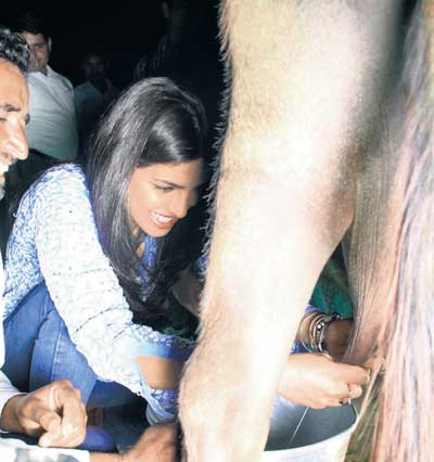 Under a green initiative is associated, Priyanka Chopra visited Manawa, a remote village in Rajasthan.She wanted to follow the distribution of solar lanterns in villages without access to electricity.